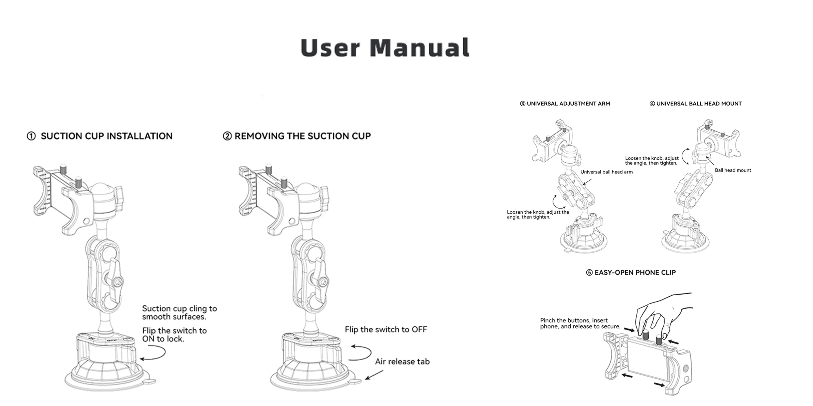 Ultra-Strong Vacuum Suction: Features our advanced one-touch vacuum lock technology. A simple press activates a powerful suction seal that grips incredibly tightly to virtually any smooth, non-porous surface. Once locked, your phone stays firmly in place, mile after mile.