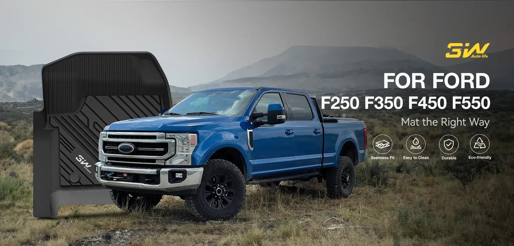 3W Custom Bed Mat Ford F250 F350 F450 F550 2017-2026 Super Duty CrewCab 5.5FT Thorex™ All-Weather Protection