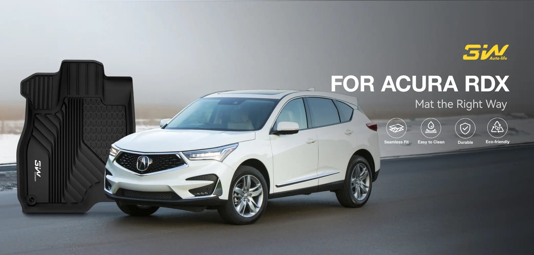 Anti-Slip Design and Easy to Clean: The anti-slip surface design keeps the 3W Acura RDX floor mats securely in place, offering better stability than OEM hooks and fasteners, especially in wet conditions. When it comes to cleaning, these mats are low-maintenance; simply use a hose or a damp towel to remove any accumulated dust, dirt, or sand.