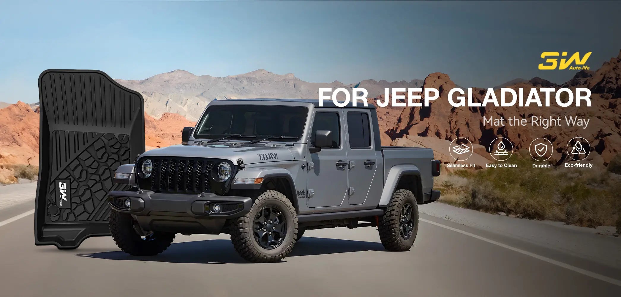 EASY TO CLEAN - 3W floor liners are compatible with the 2020-2025 Jeep Gladiator . They are easy to clean. The High-density TPE materials with deep grooves on the surface will trap liquid, milk, snow, dirt, sand etc.