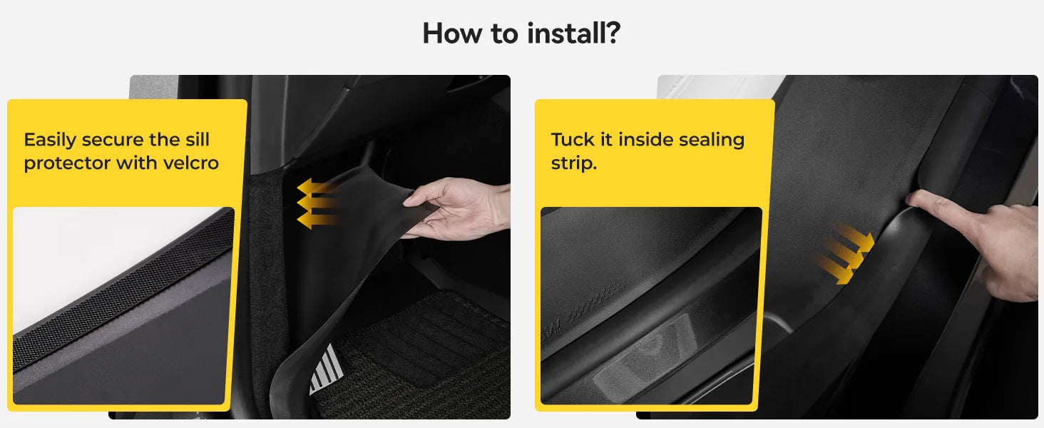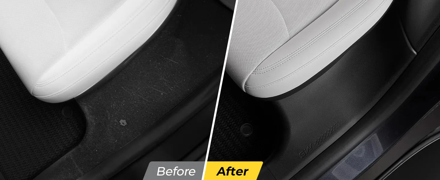 The custom Tesla Model Y Juniper Sill Guard Set provides elegant and comprehensive protection for your vehicle's most vulnerable areas. This complete kit includes precisely fitted guards for both front and rear door sills, plus a full-coverage guard for the trunk ledge.