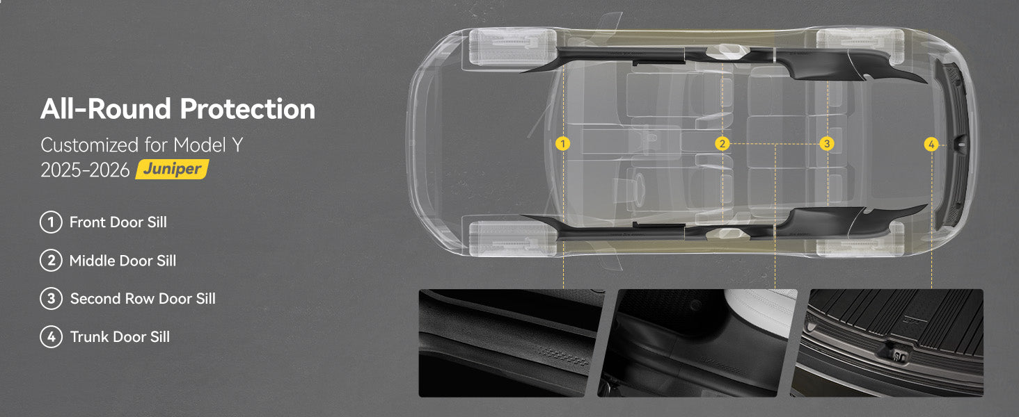 3W Tesla Model Y Juniper 2025 2026 Door Sill Protector Trunk Sill Guards Full Protection