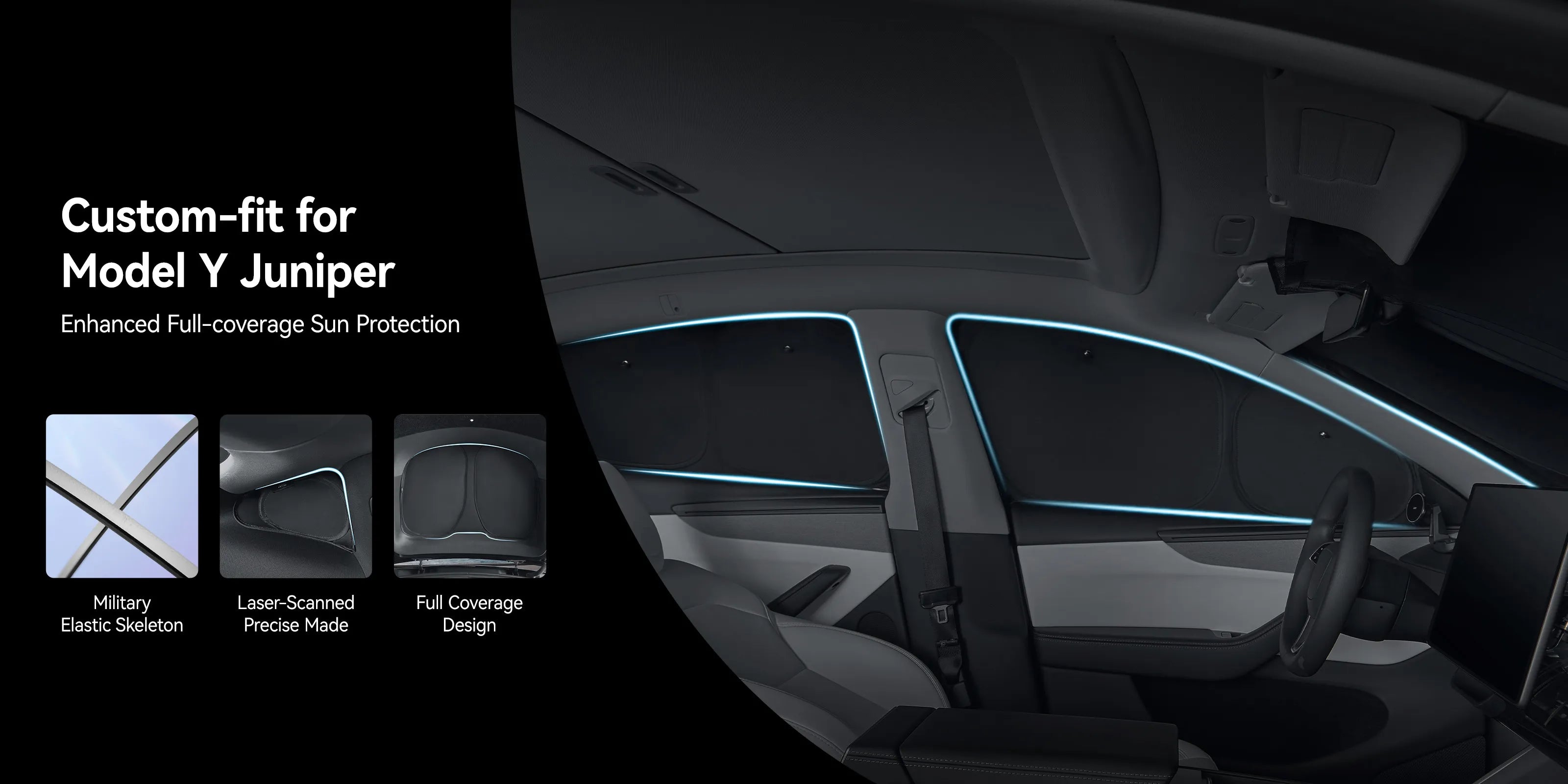 Designed exclusively for the latest Tesla Model Y Juniper (2025–2026), this 8-piece 3W window shade set fits seamlessly into each window without gaps. The upgraded side-window design allows the driver’s side window to be partially opened for checking mirrors or reaching items while maintaining protection and privacy.