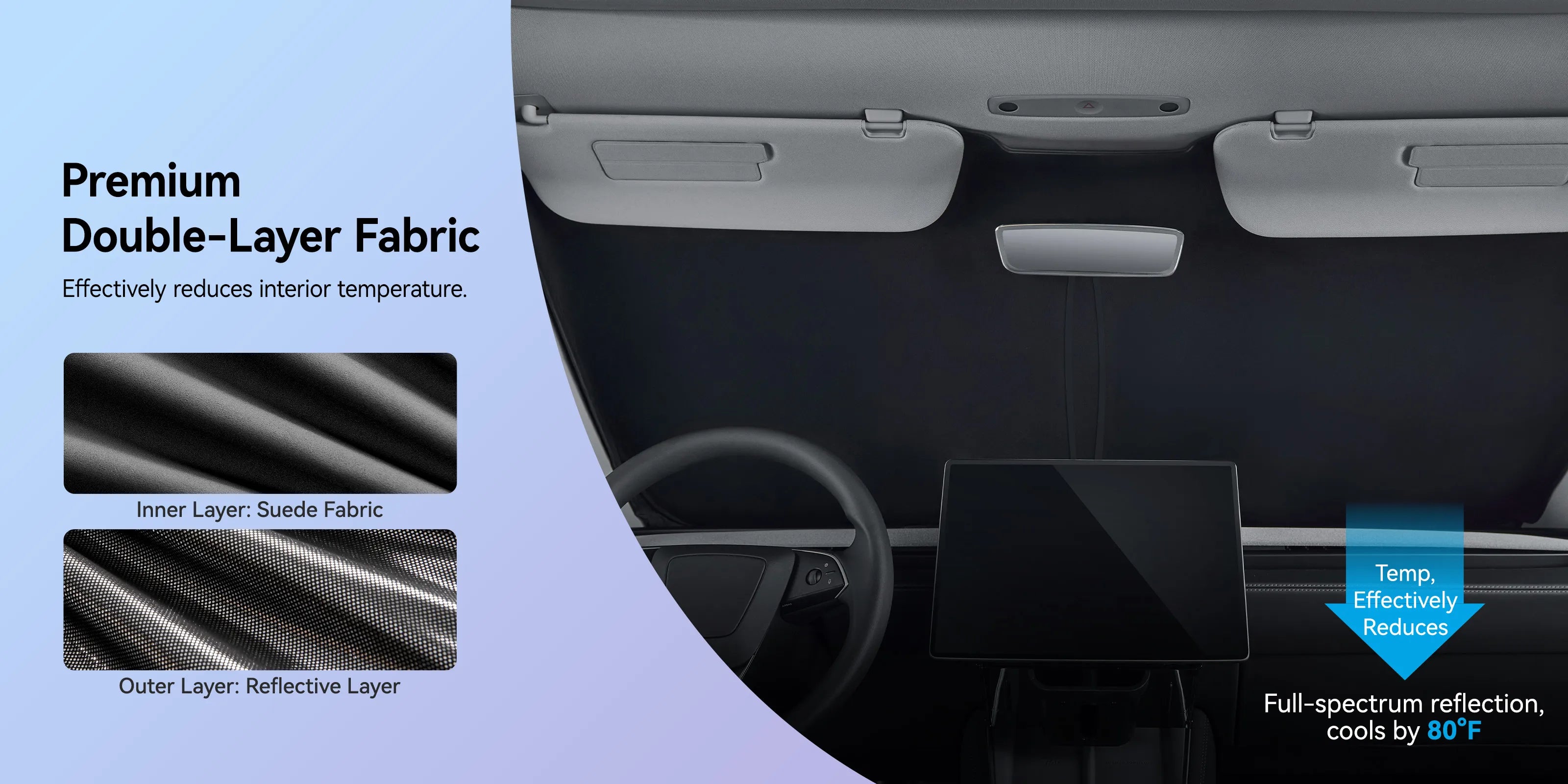 Made with dual-layer high-quality fabric, these sunshades help reduce interior heat and protect your car’s interior from sun damage. They create a cooler, more comfortable cabin for you, your passengers, and pets while providing reliable privacy.