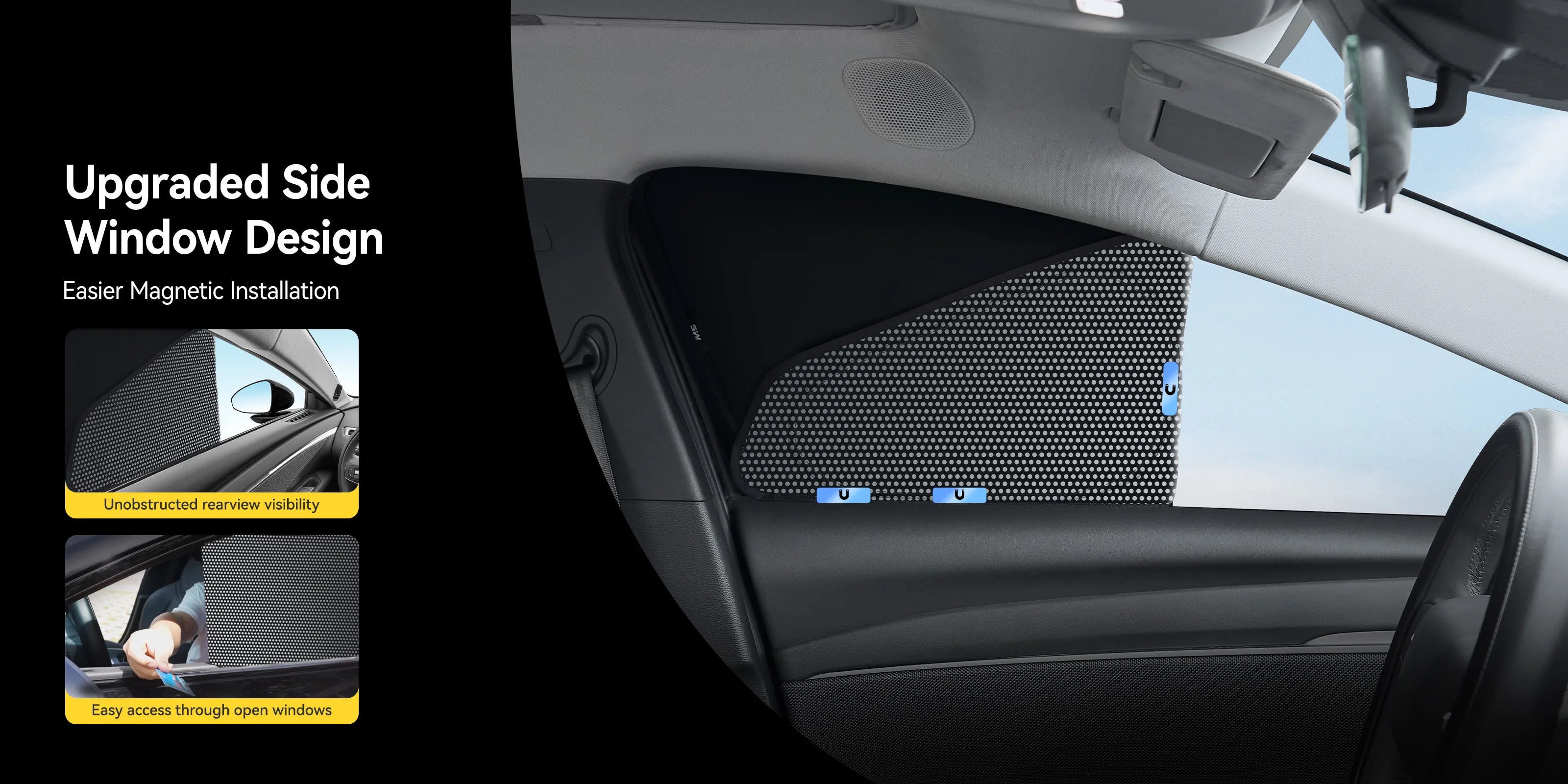 Each shade simply tucks into the window frame—no tools required. Installation is quick and hassle-free, and removal is just as simple when you need to drive or store them. The set is reusable and designed for everyday convenience.