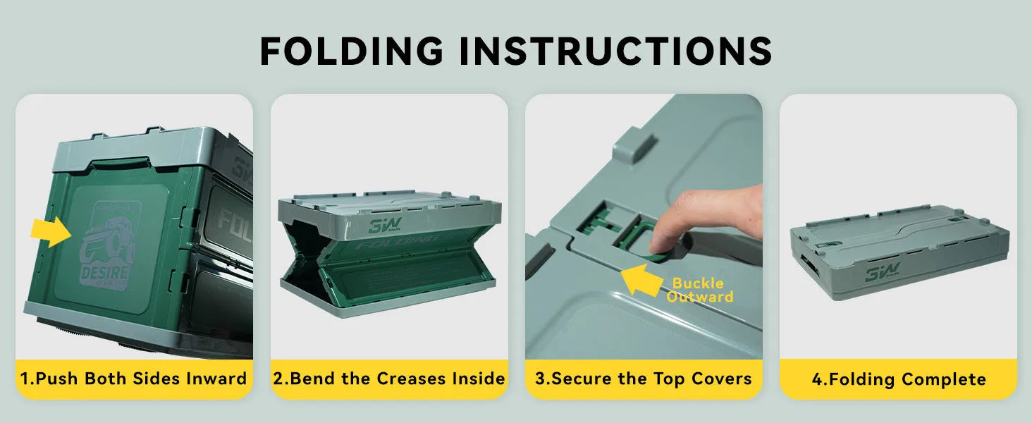 Elevate your organization game with our versatile Folding Storage Box. Ideal for decluttering any indoor space, stowing away essentials in your car, or keeping gear compact on camping trips, this foldable container with a secure lid is your go-to solution for a tidy and organized life. Its space-saving design and easy portability make it indispensable for modern living.